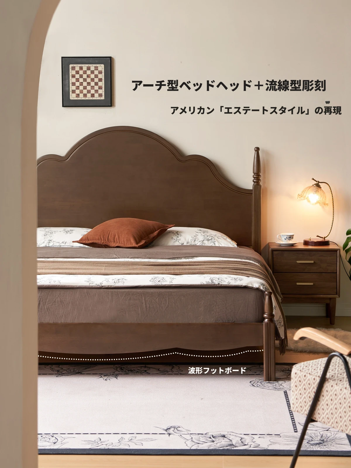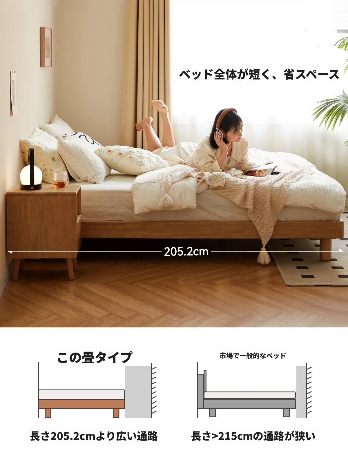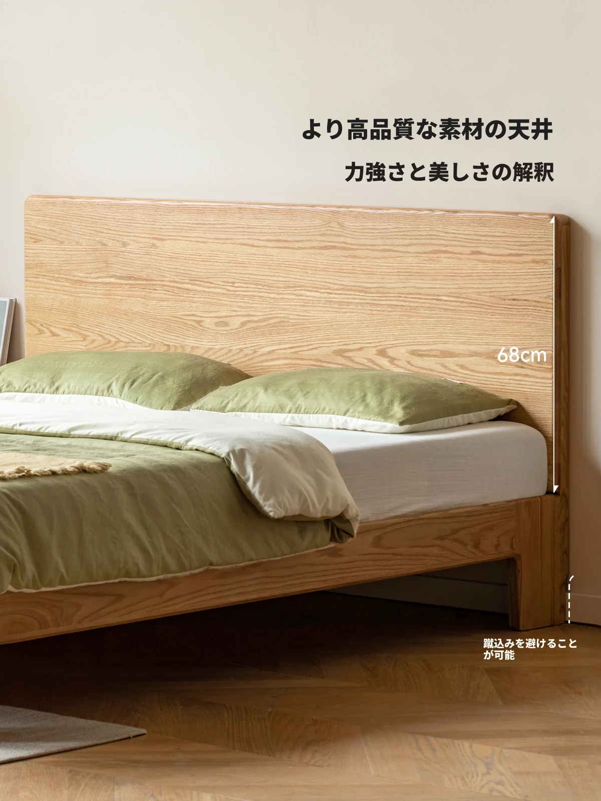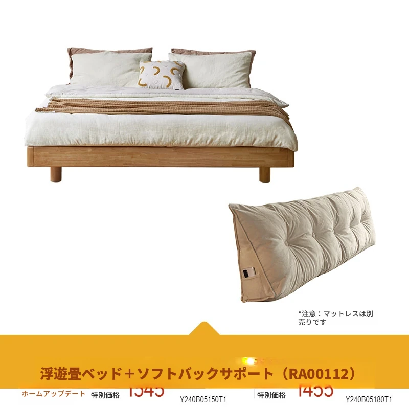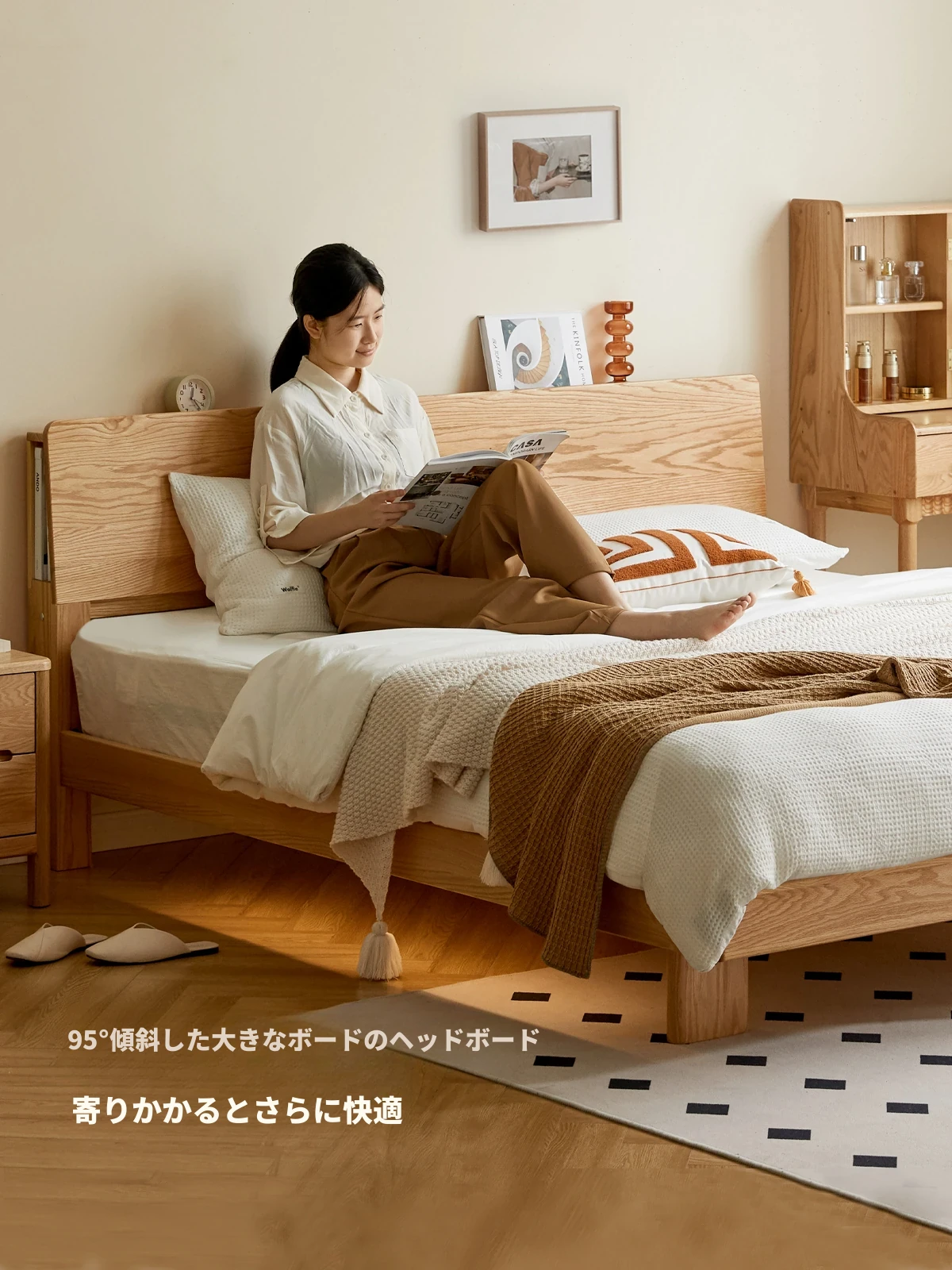 【魅力の木製家具】ゲンジモクユーxヴィサ純天然無垢材ベッド - クリームホワイトのハープ風デザインで、エレガントなお部屋にぴったり!快適なハープ型ソフト背もたれ付きで、主寝室に特別な安らぎを。