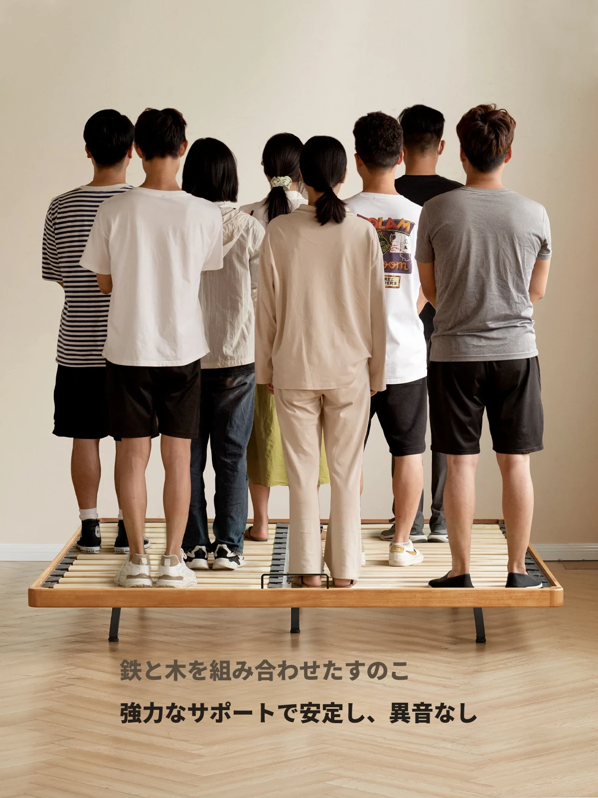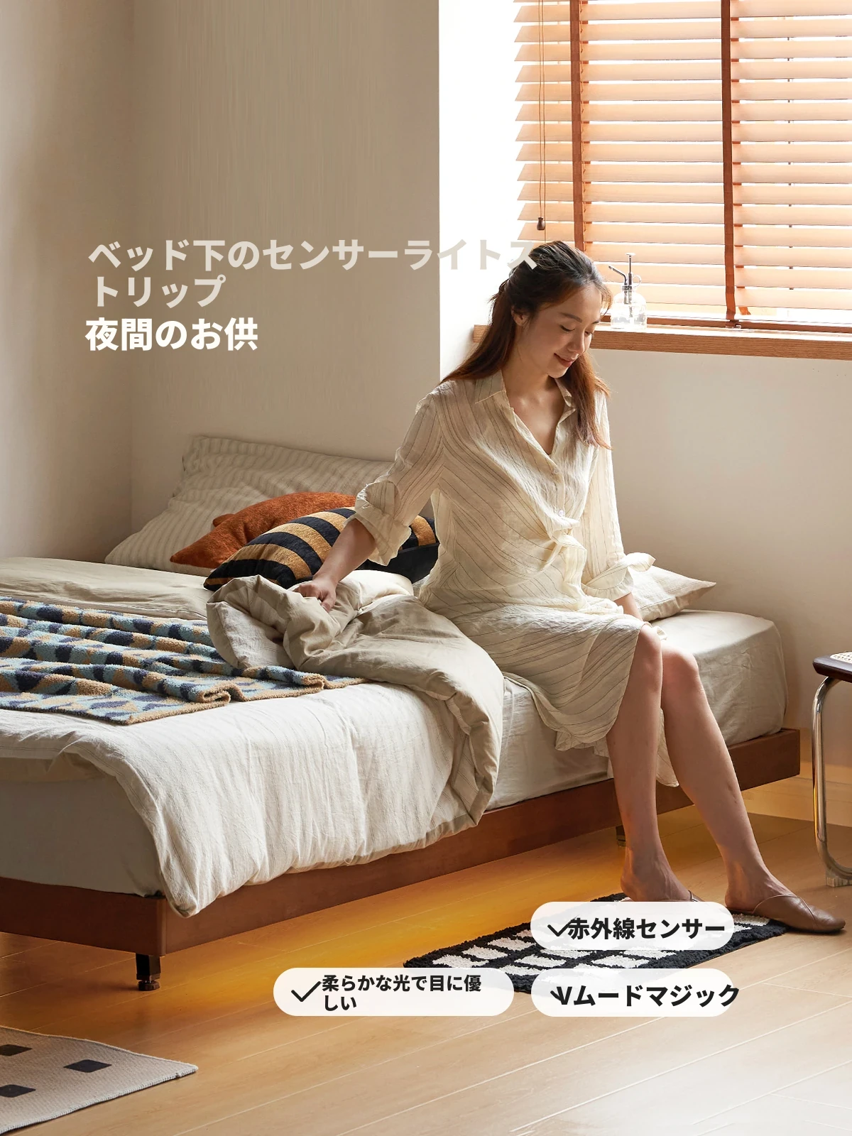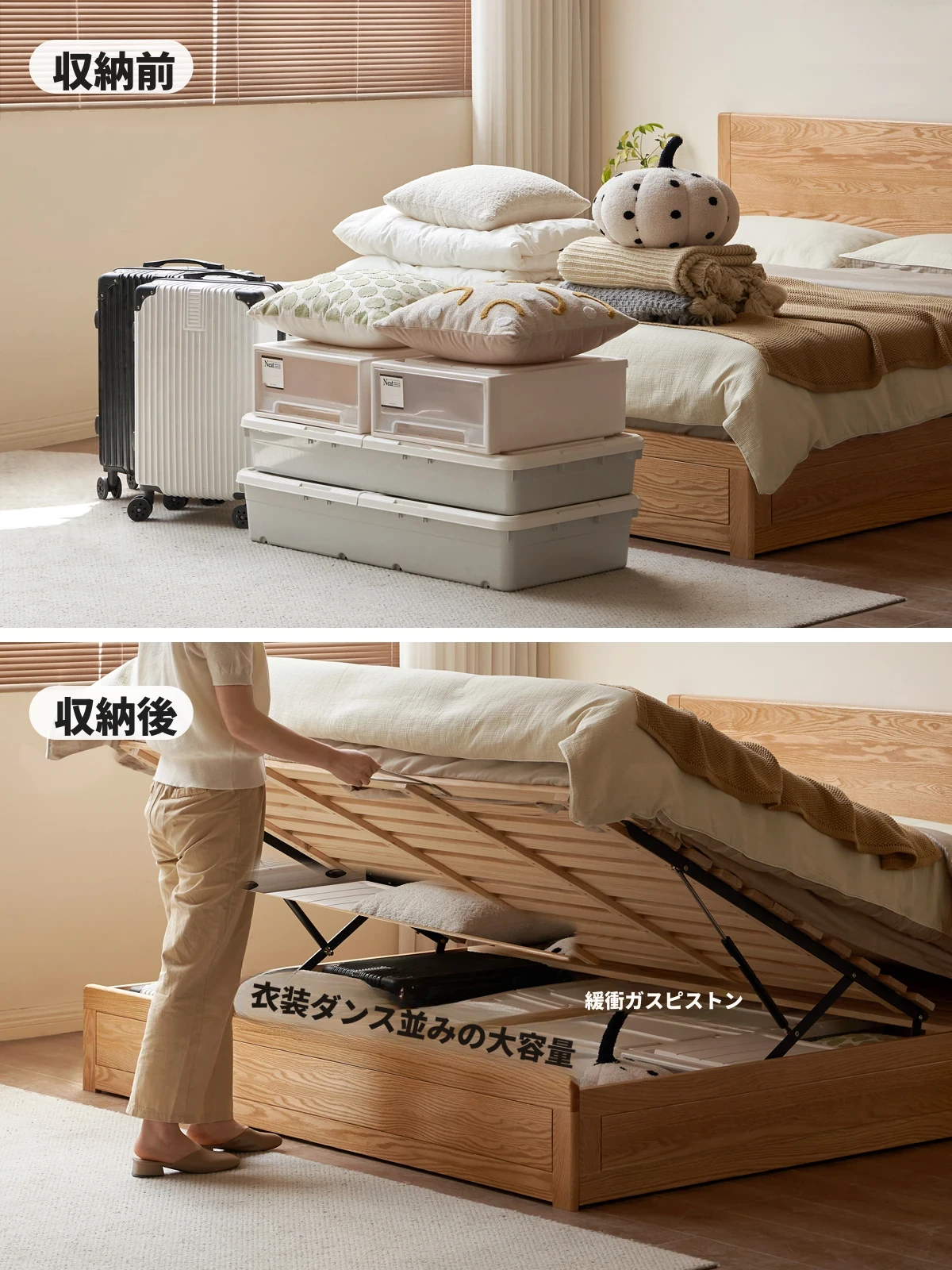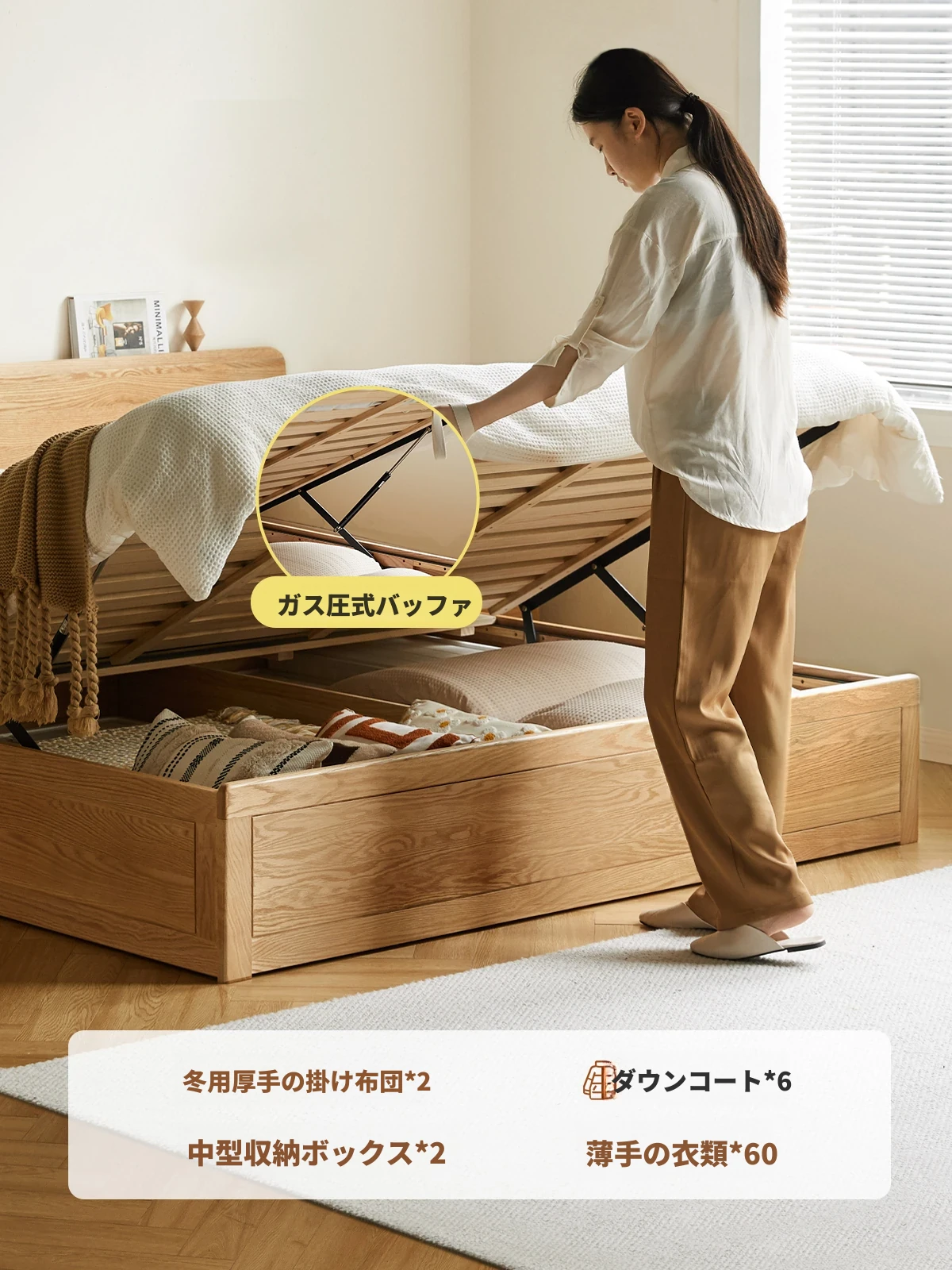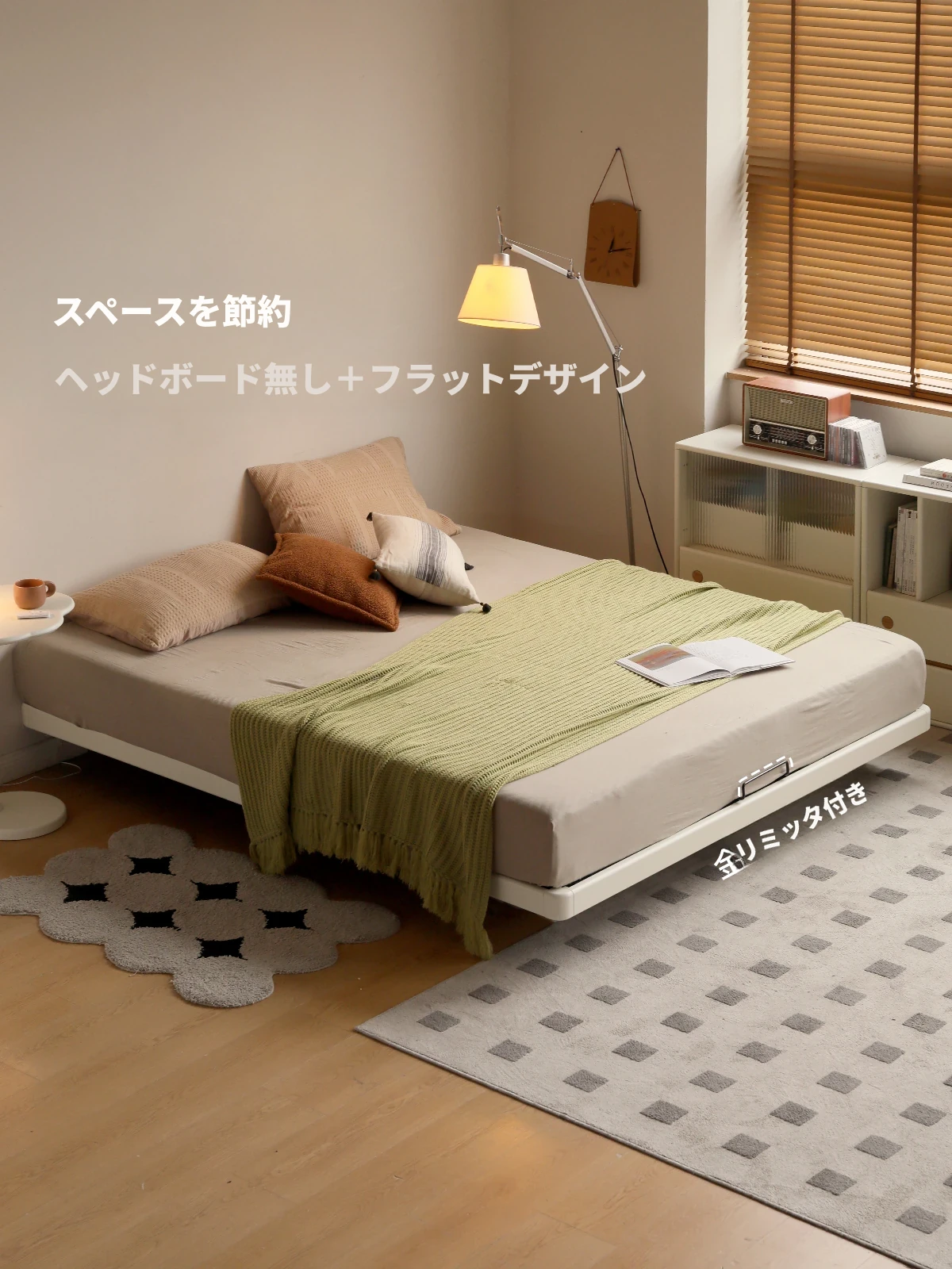 【魅力の木製家具】ゲンジモクユーxヴィサ純天然無垢材ベッド - クリームホワイトのハープ風デザインで、エレガントなお部屋にぴったり!快適なハープ型ソフト背もたれ付きで、主寝室に特別な安らぎを。
